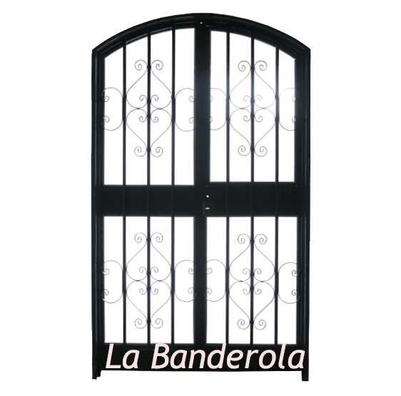 Portada doble hoja de abrir 1/4 punto externo, m/chapa Nº18, con 3/4 reja colonial y postigo de abrir.